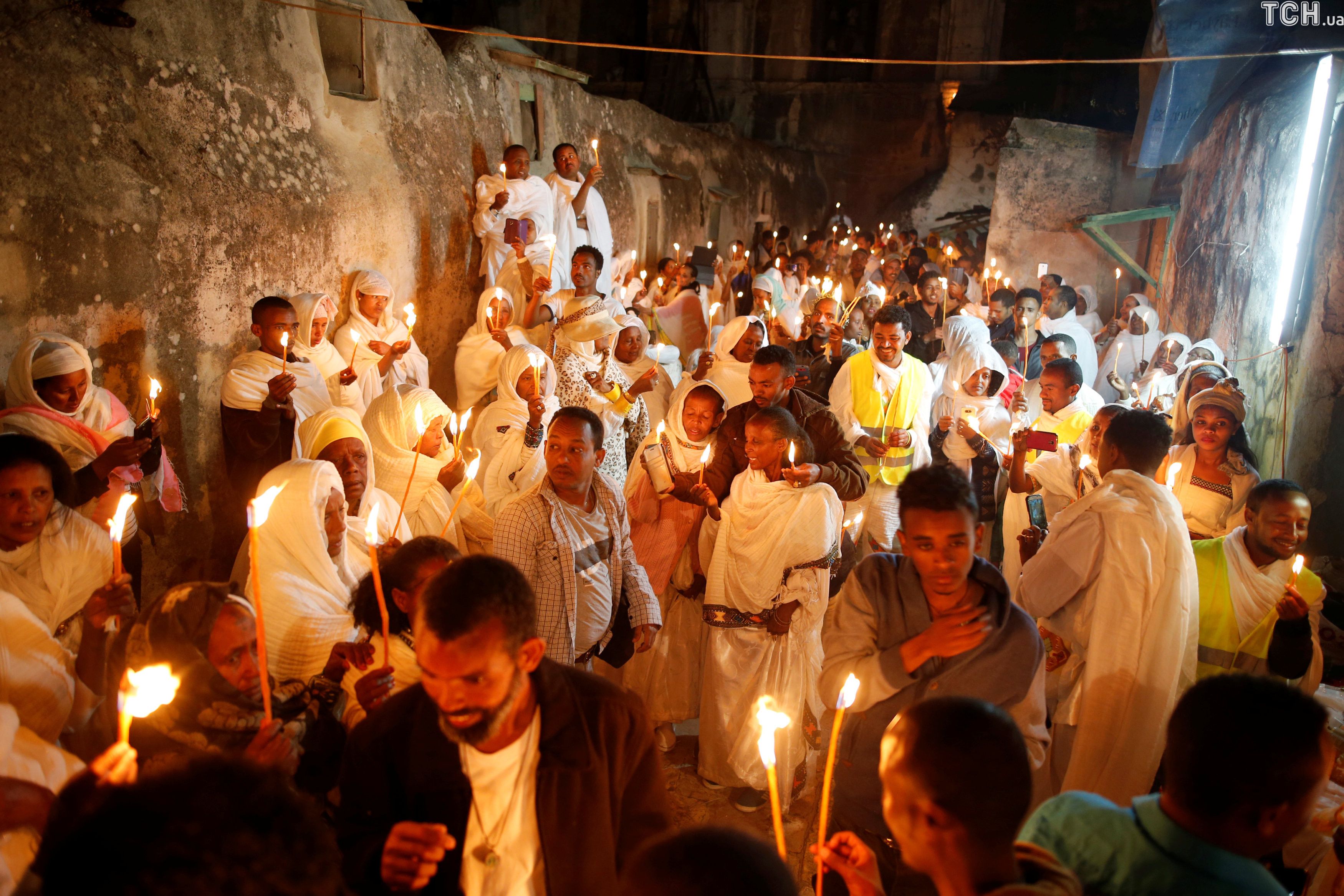 Віряни в Ефіопії передають один одному Благодатний вогонь / © Reuters