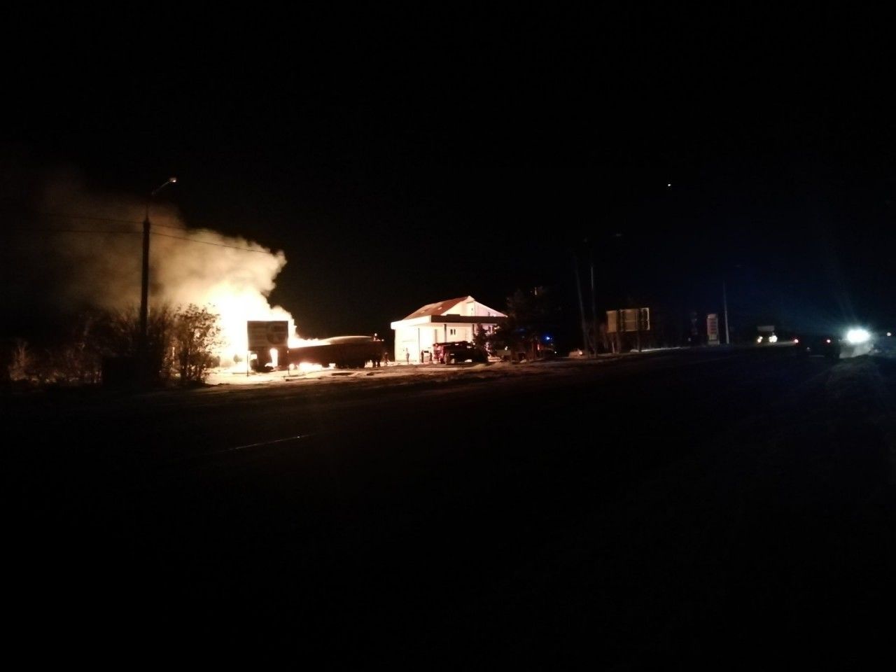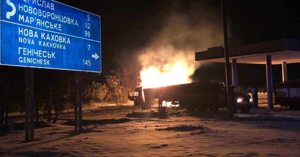 Увечері 7 лютого у Херсонській області біля міста Берислав вантажівка врізалась в ємність із газом на АЗС. Внаслідок зіткнення спалахнула пожежа. Постраждалих і жертв, на щастя, немає.
