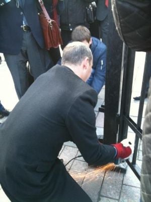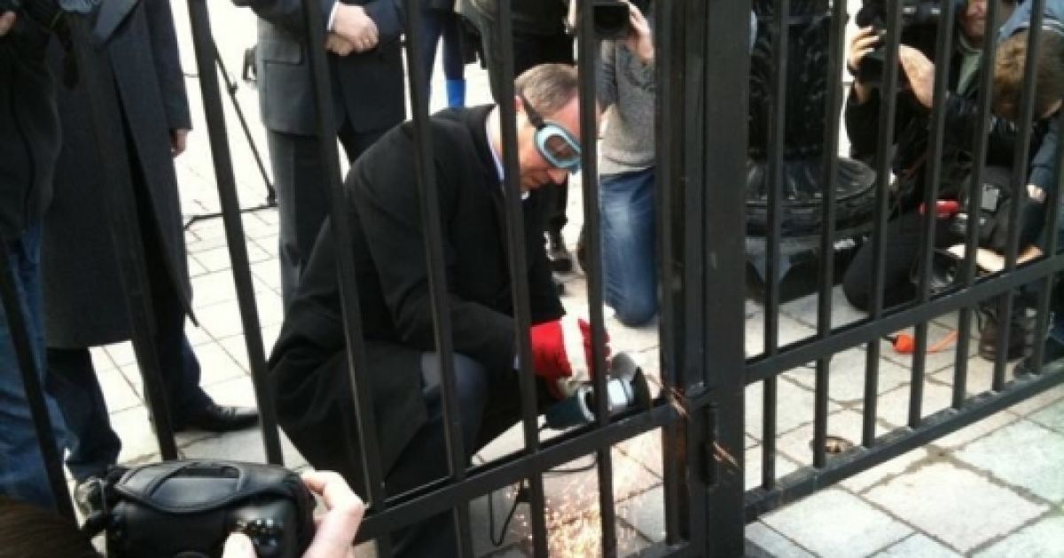 Нардепи під Радою розпиляли паркан / © gazeta.ua
