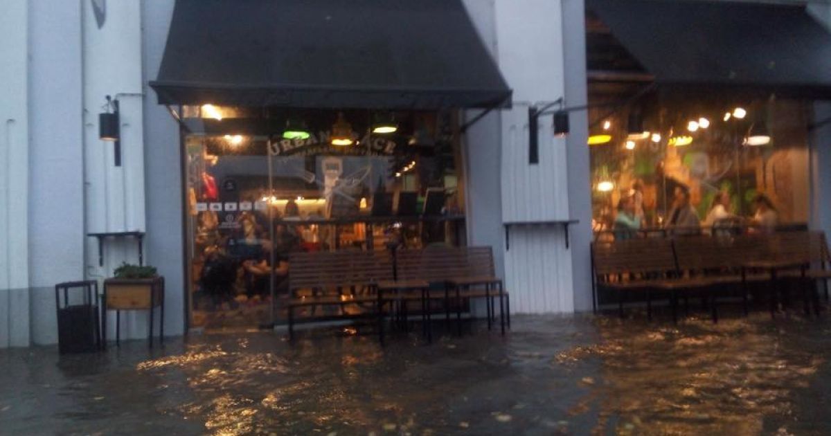 Негода в Івано-Франківську розпочалася близько 19.00 і закінчилася майже о 22.00. В обласному центрі випала тижнева норма опадів, кажуть синоптики. Дощова каналізація з такою кількістю води не впоралася, тож подекуди не витримали люки – вода їх зірвала. Міські вулиці перетворилися на річки, а люди ходили по коліна у воді.