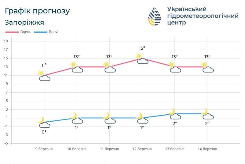 За даними порталу Sinoptik, у Запоріжжі 11 березня небо буде ясним до самого закінчення дня. Без опадів.