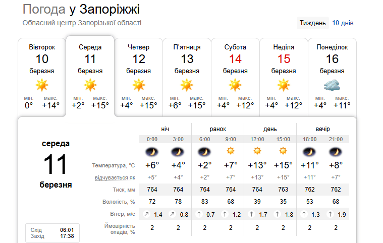 Погода в Запоріжжі 11 березня / © скриншот