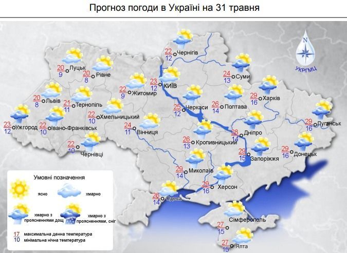 В останній день весни, 31 травня, в окремих регіонах пройдуть дощі, місцями з грозами. Денна температура становитиме від 20 до 28 градусів.