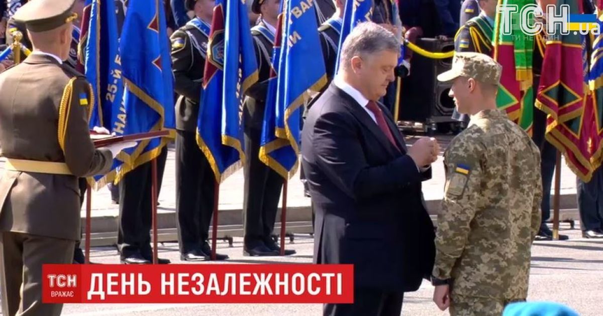 Під час параду Порошенко присвоїв звання Героїв України двом АТОвцям