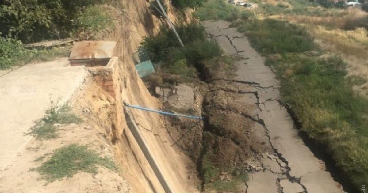 Жителів прилеглої вулиці від катастрофи тепер відділяють лише кілька метрів. Через стометрову тріщину обвалилася ділянка дороги та кілька електростовпів.