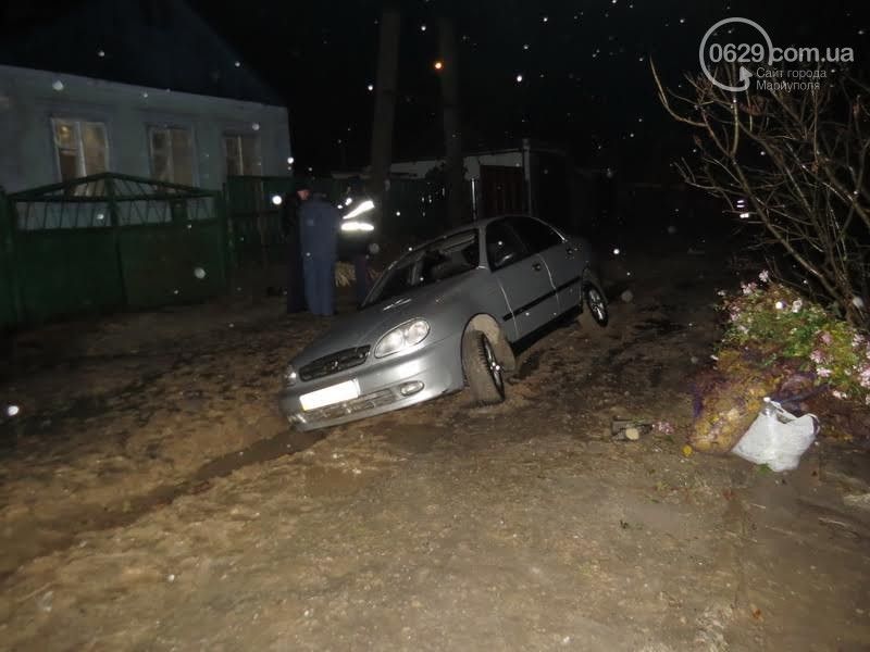 Через негоду в селищі Новоселівка розмило проїжджу частину - там під землю провалився автомобіль таксі. А, тим часом, біля Маріуполя, у Волновасі, випав перший сніг.