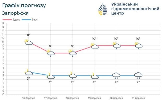 Погода в Запрорізькій області на тиждень від 23 до 29 березня / © Укргідрометцентр