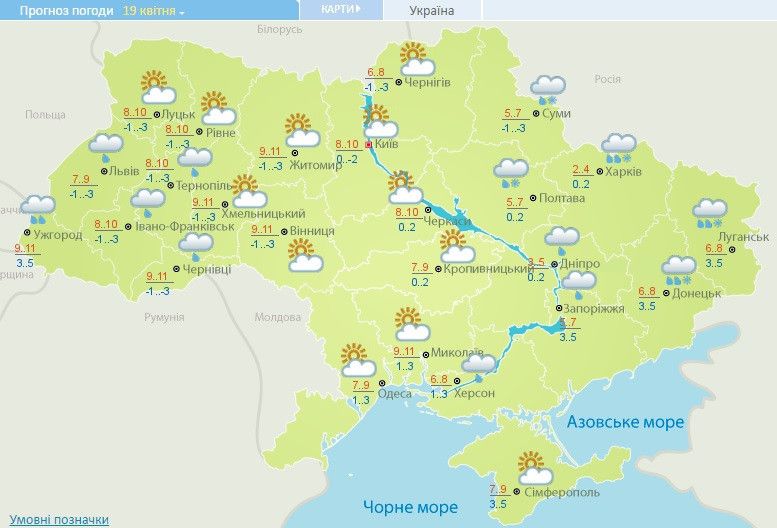 Прогноз погоди в Україні на 19 квітня 2017 року / © Укргідрометцентр