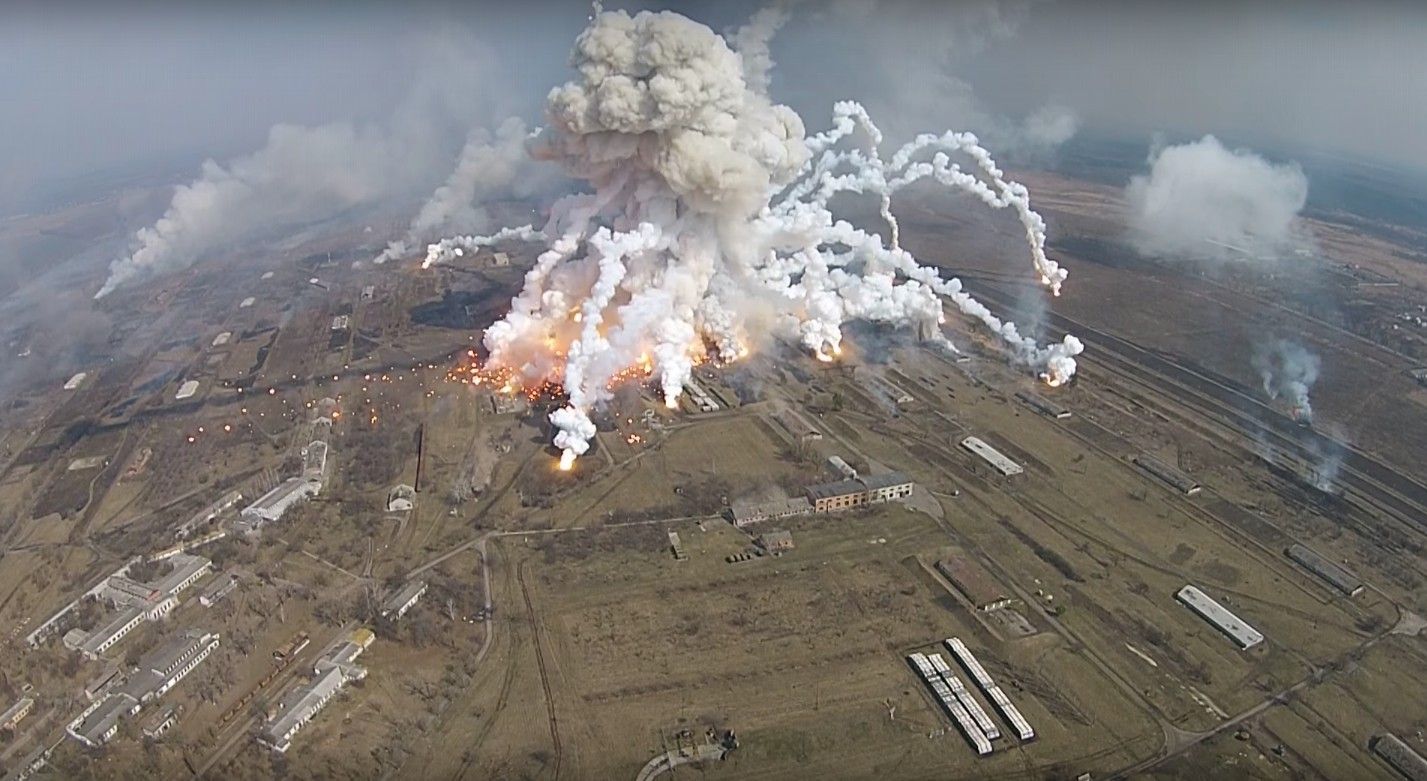 Міністр оборони України Степан Полторак озвучив дві версії пожежі. За його словами, вибух стався через безпілотники або підрив.