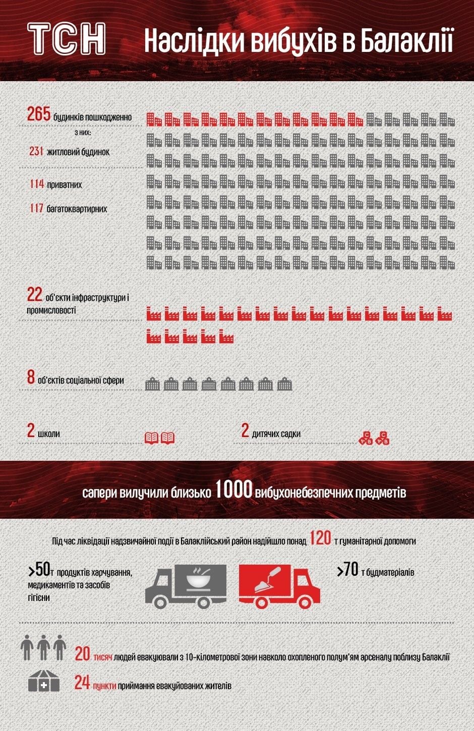 Нагадаємо, пожежа з подальшою детонацією боєприпасів на території військового складу Міністерства оборони України у місті Балаклія Харківської області виникла вночі 23 березня. Зона надзвичайної ситуації охопила Балаклію та дев'ять прилеглих населених пунктів. Остаточно пожежу загасили вранці 26 березня.