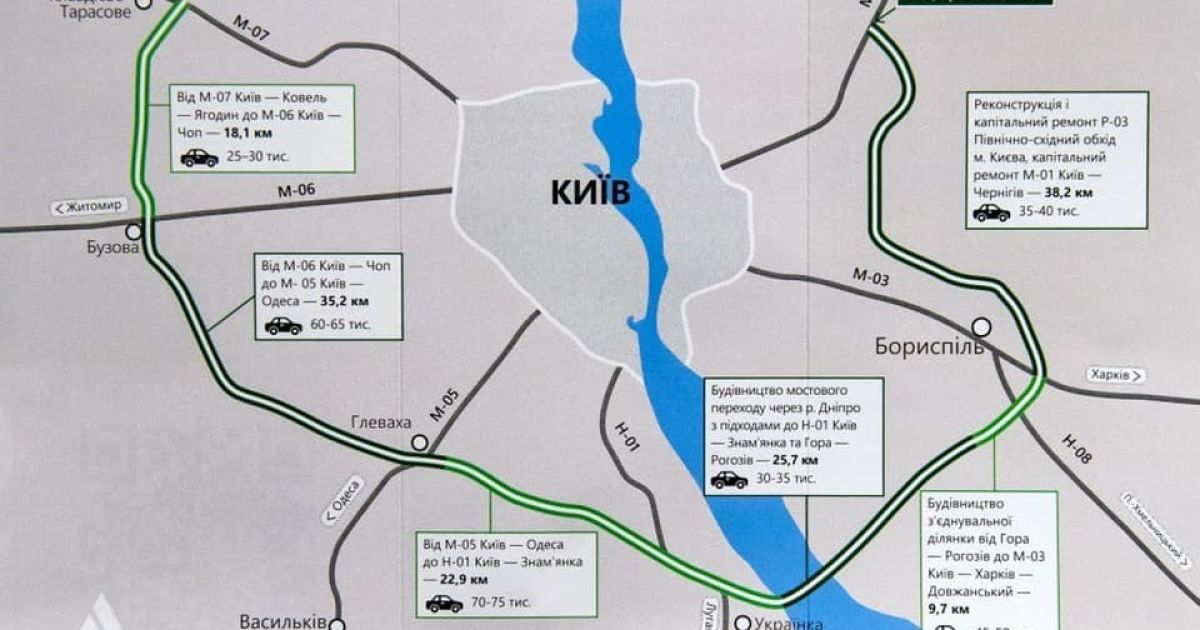 "З огляду на хоча б темпи і масштаби нинішнього будівництва об'їзної Дніпра, Запорізьких мостів або траси Дніпро-Решетилівка-Київ, можна припускати, що і Київ вчасно отримає своїх заслужених і довгоочікуваних 150 км нової об'їзної", - зазначив експерт.