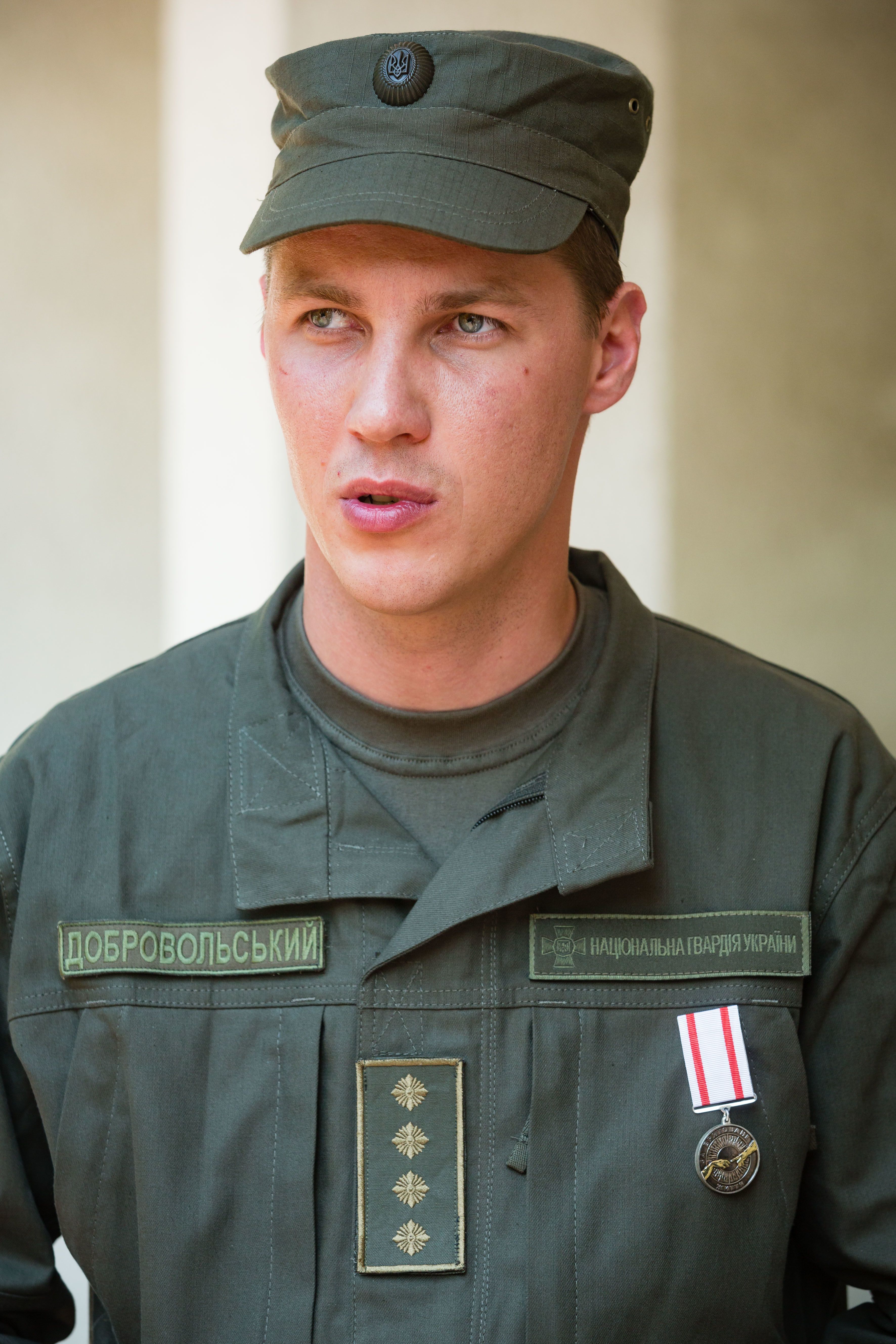 Президент України Петро Порошенко нагородив медаллю "За врятоване життя" бійця Нацгвардії Сергія Добровольського, який надав першу медичну допомогу постраждалим від вибуху на вулиці Грушевського під час святкування 26-ї річниці незалежності країни.