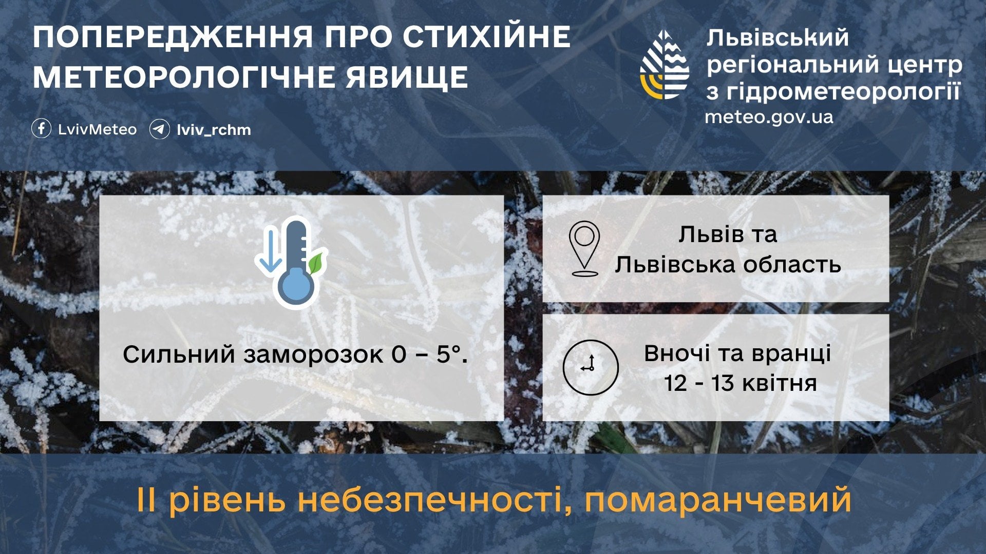 Синоптики попереджають про сильні заморозки на Львівщині 12–13 квітня / © Укргідрометцентр