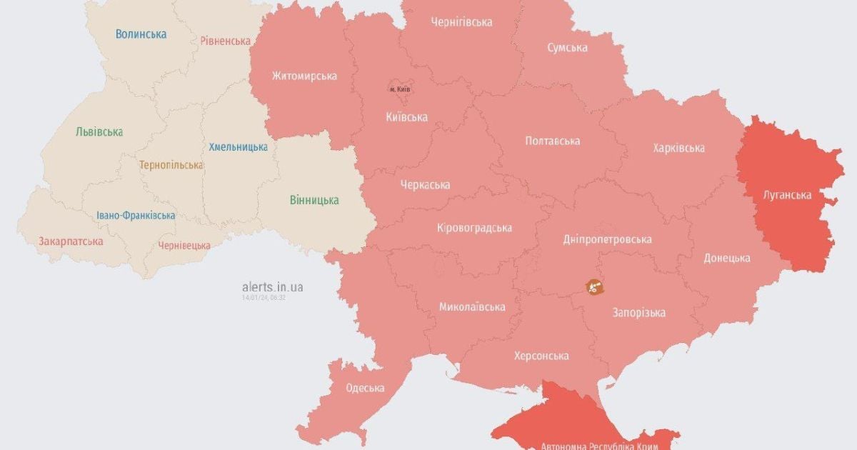 Уранці 14 січня 2024 року на значній території України оголошена повітряна тривога.