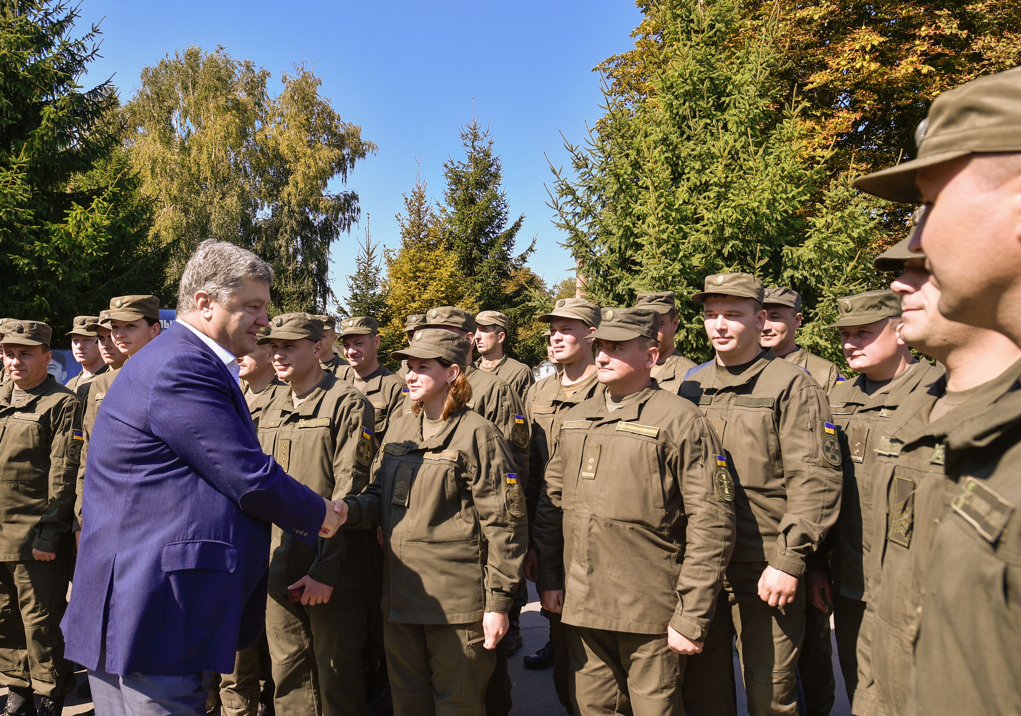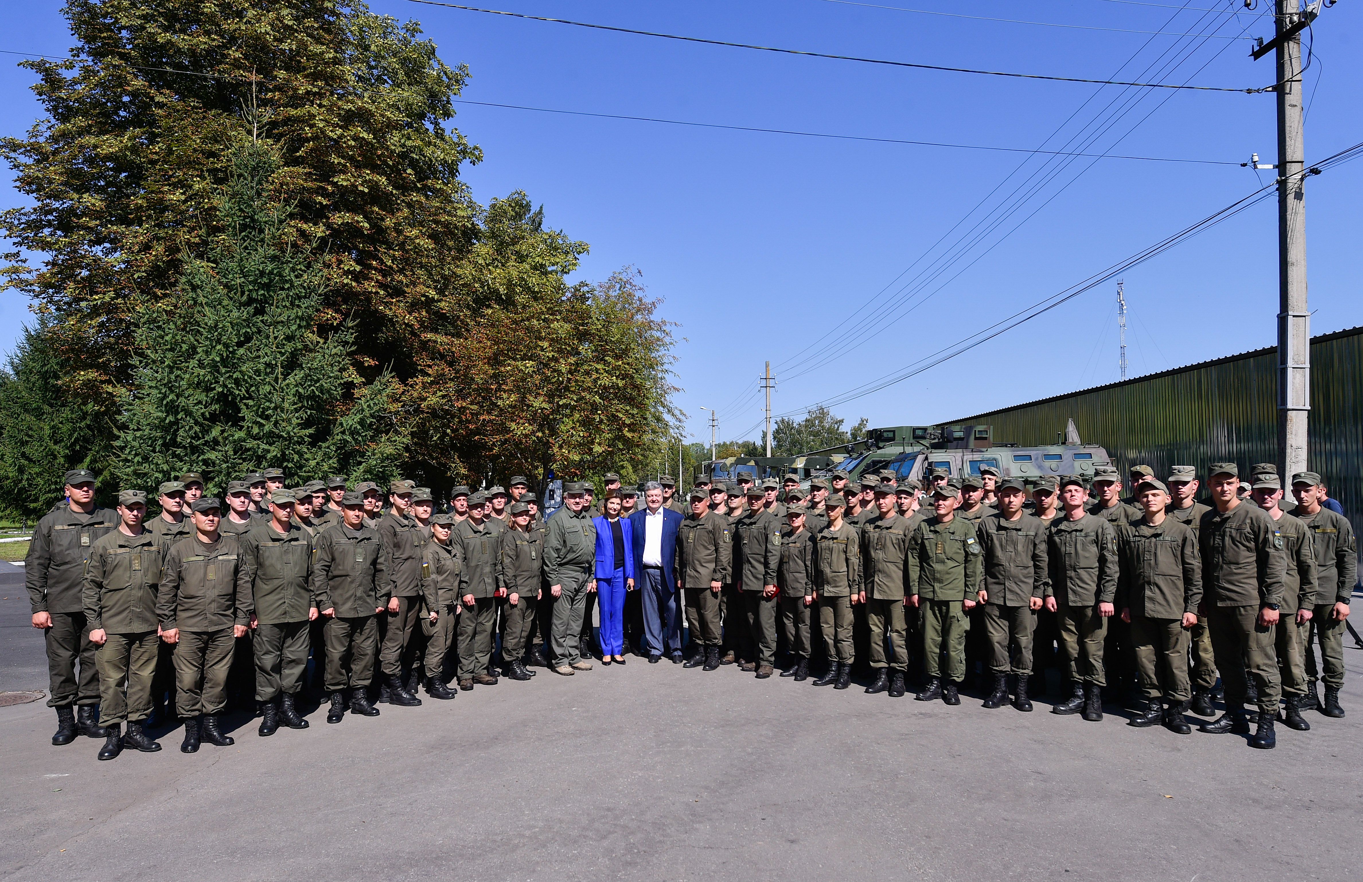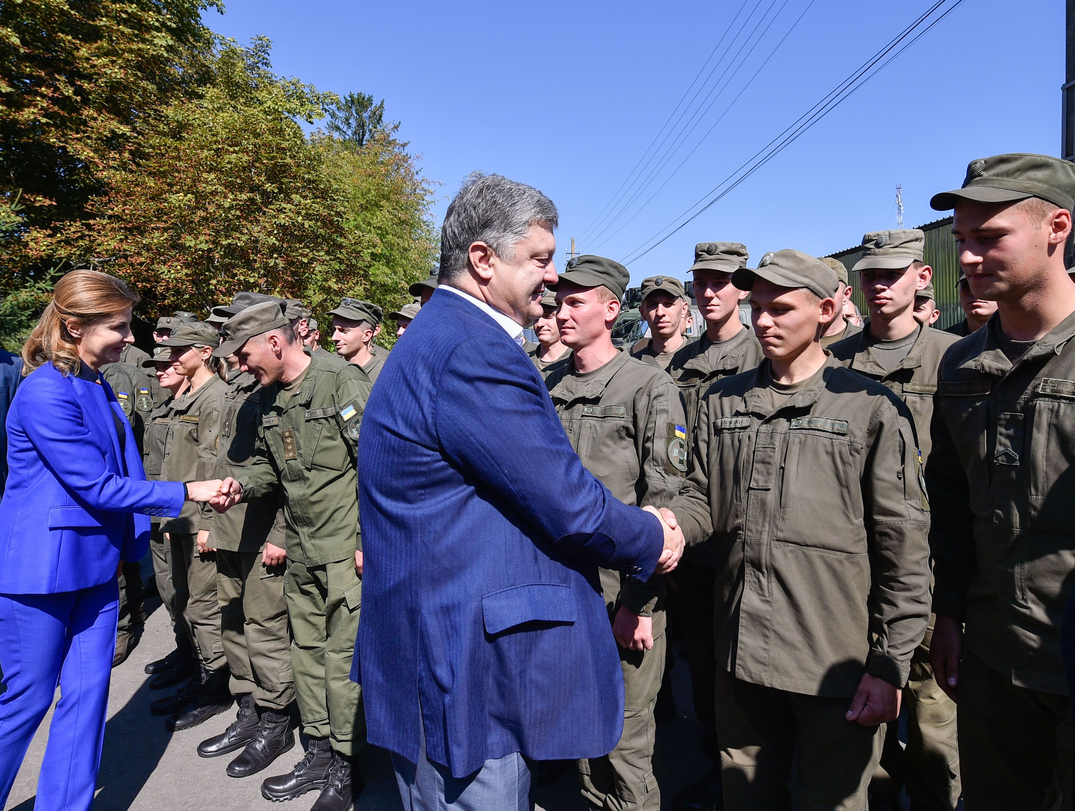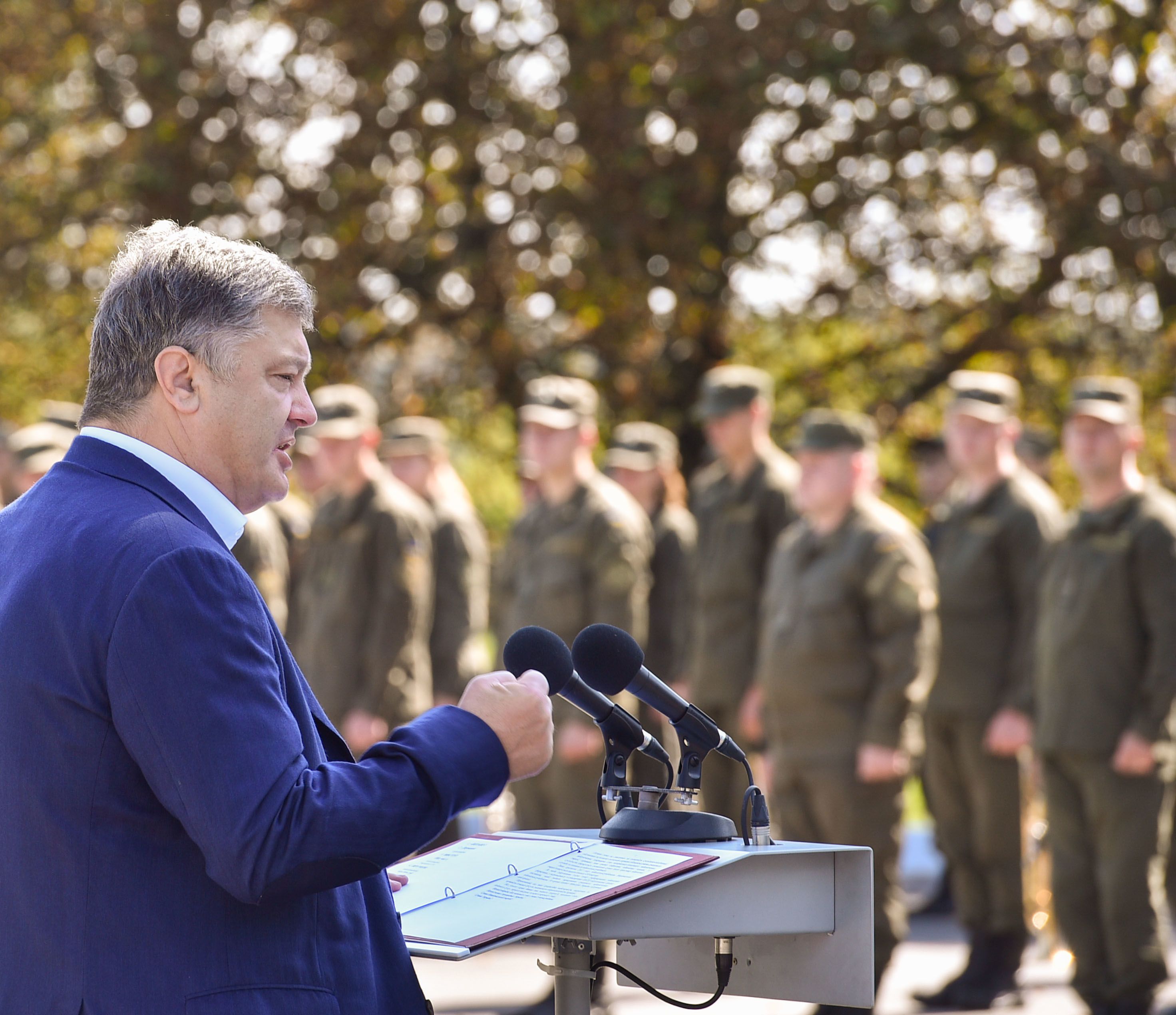 Президент Петро Порошенко під час робочої поїздки до Вінницької області в суботу, 9 вересня, відвідав одну з військових частин Національної гвардії та відзначив державними нагородами військових.