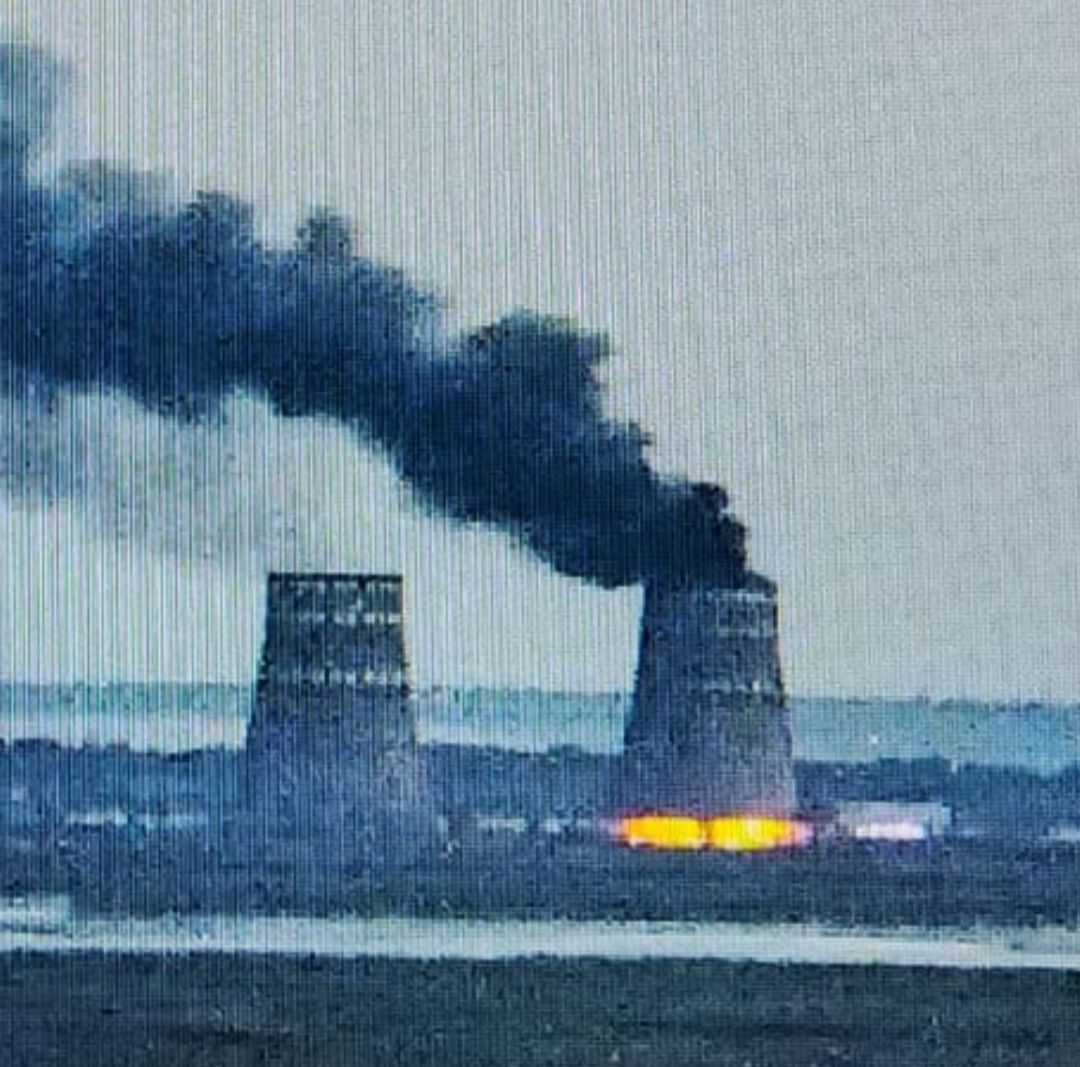 Раніше мешканці міста Нікополя зауважили клуби чорного диму над однією з градирень Запорізької атомної електростанції, яка перебуває в руках російських окупантів. Поруч помітні відблиски великої пожежі.