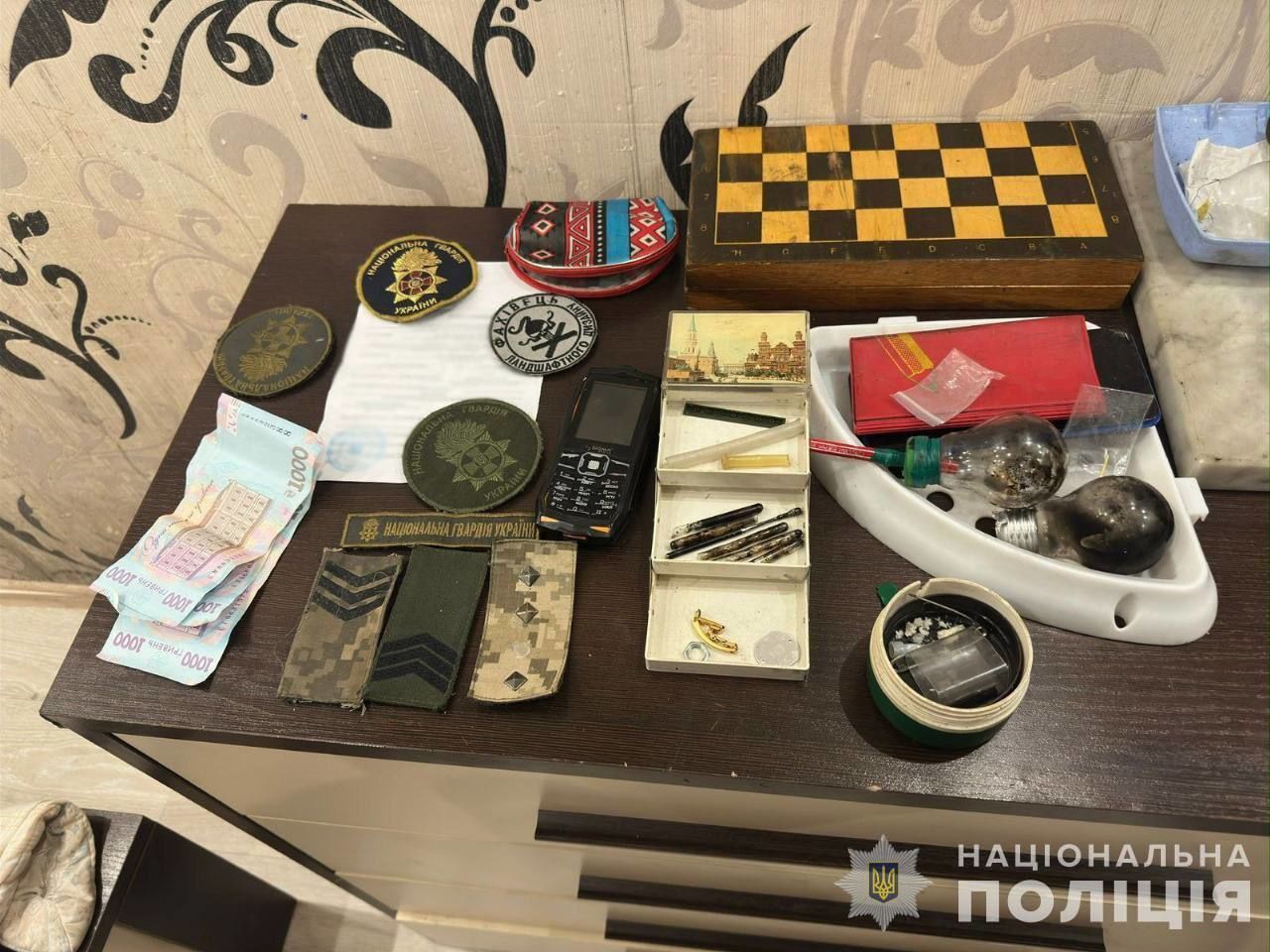 Правоохоронці спіймали змовників "на гарячому". У фігурантів провели обшуки і вилучили елементи форменого одягу, гроші, банківські картки, мобільні телефони. Також було вилучено і спрямовано на експертне дослідження зброю, порошкоподібну речовину та засоби для вживання наркотиків.