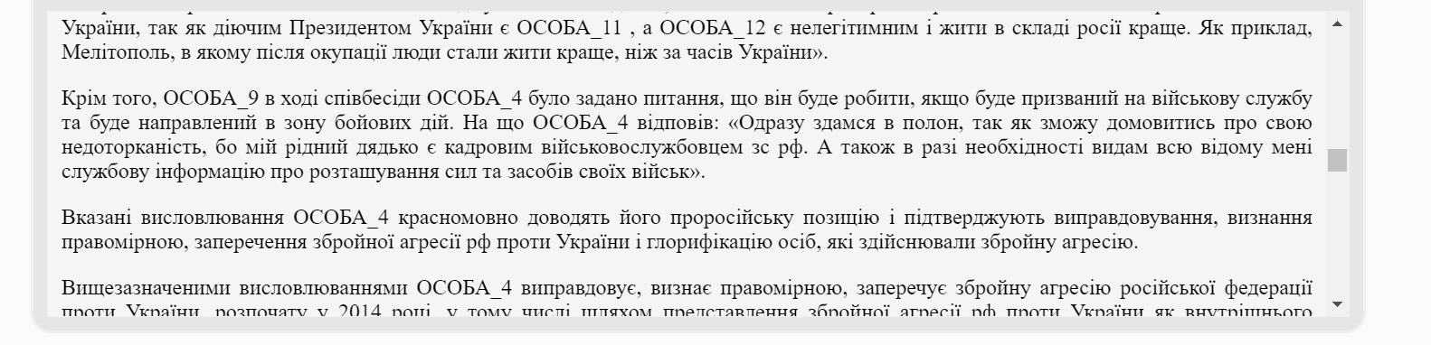 Крім того, він заявив, що якщо його мобілізують, він одразу здасться в полон і здасть усі локації ЗСУ. Підозрюваний додав, що зробить це, оскільки його дядько служить в окупаційній армії.
