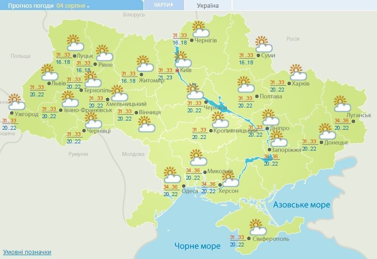 Прогноз погоди в Україні на 4 серпня 2017 року / © Укргідрометцентр