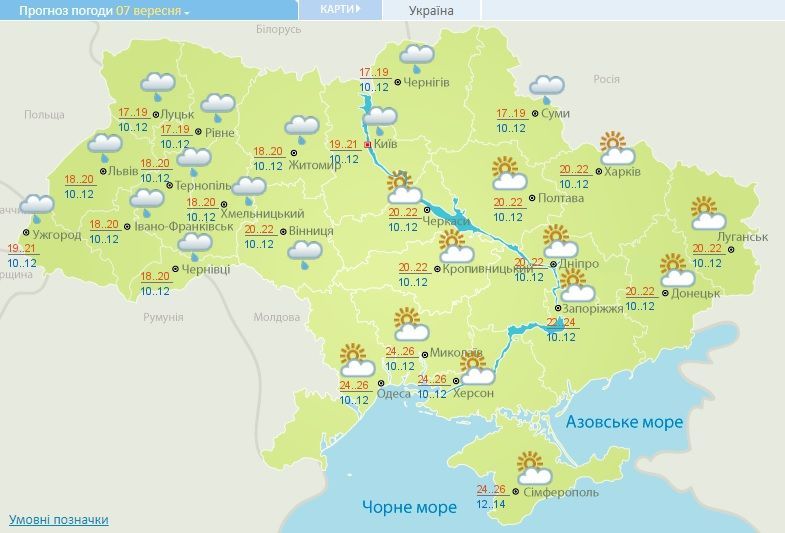 Прогноз погоди в Україні на 7 вересня 2017 року / © Укргідрометцентр