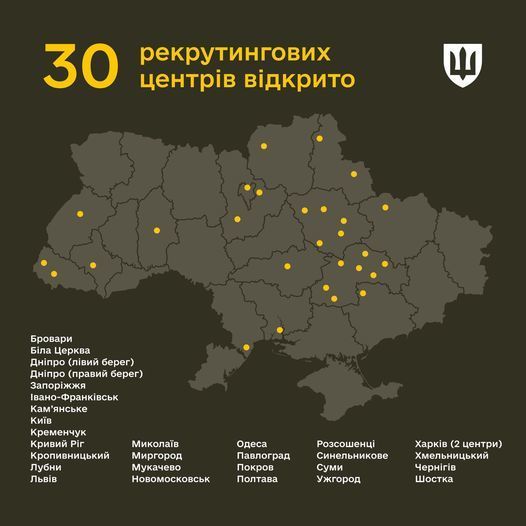 На початок серпня рекрутингові центри працюють у таких містах: