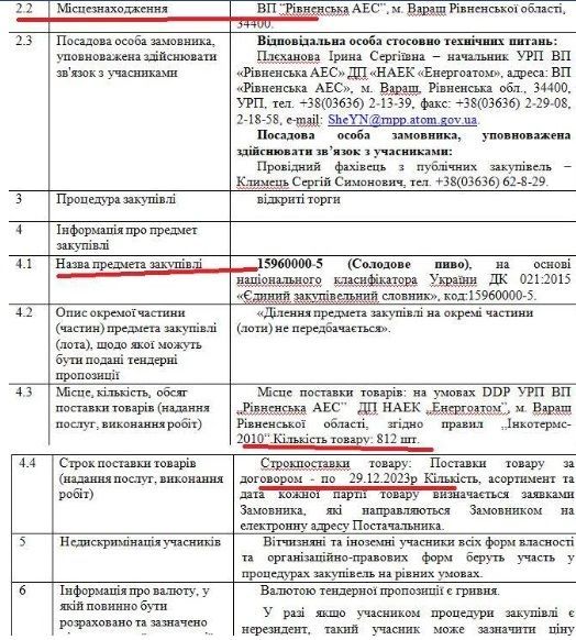 Заявки на постачання пива приймаються з 14 до 22 червня. Сам аукціон має відбутися 23 червня. Доставити товар на АЕС постачальник повинен до 29 грудня. Тому можна припустити, що алкоголь закуповують до новорічних свят.