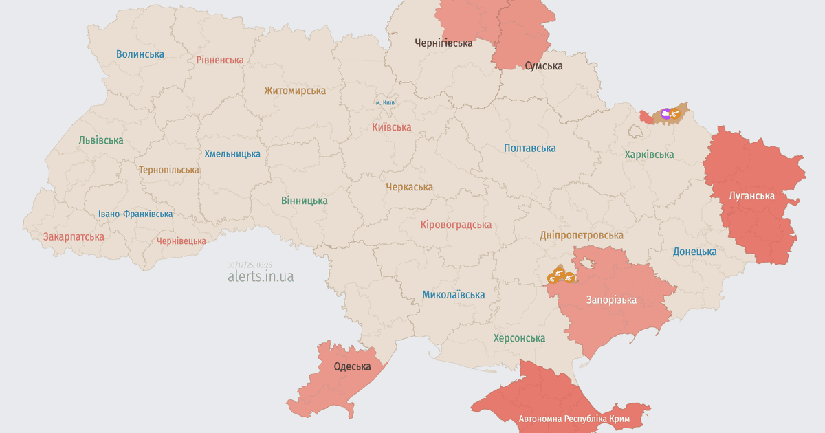 Україну в ніч проти 30 грудня атакують ворожі безпілотники типу Shahed.