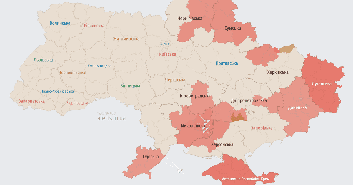 Україну в ніч проти 14 березня атакують ворожі безпілотники типу Shahed.