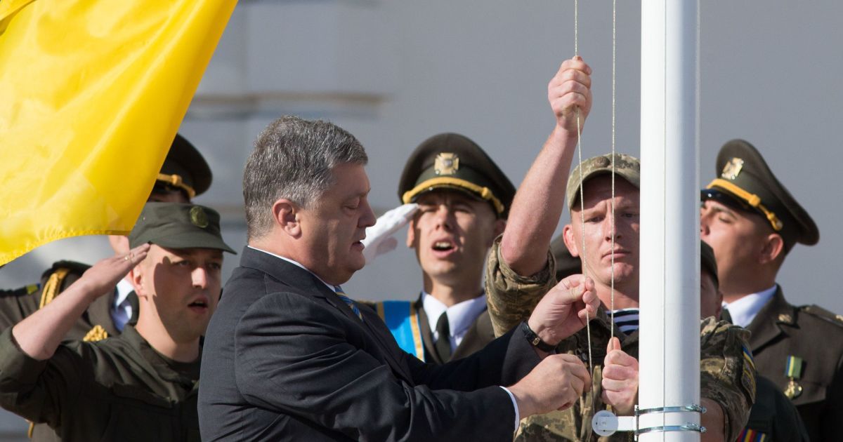На думку Порошенка, "трагічні й водночас героїчні події останніх років перетворили національний прапор на справжнє знамено боротьби за свободу, демократію, незалежність".