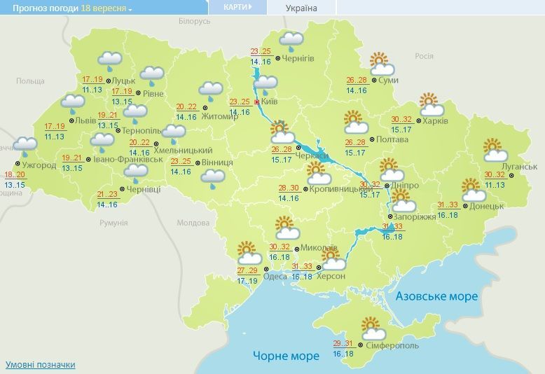 Прогноз погоди в Україні на 18 вересня 2017 року / © Укргідрометцентр