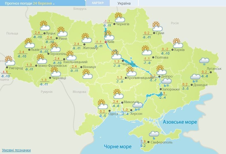 Прогноз погоди в Україні на 24 березня 2018 року / © Укргідрометцентр