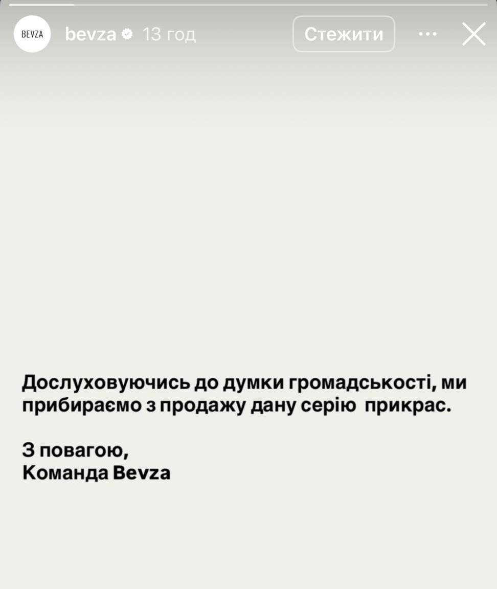 Про це бренд Bevza оголосив у сторіз на своїй сторінці в Instagram.