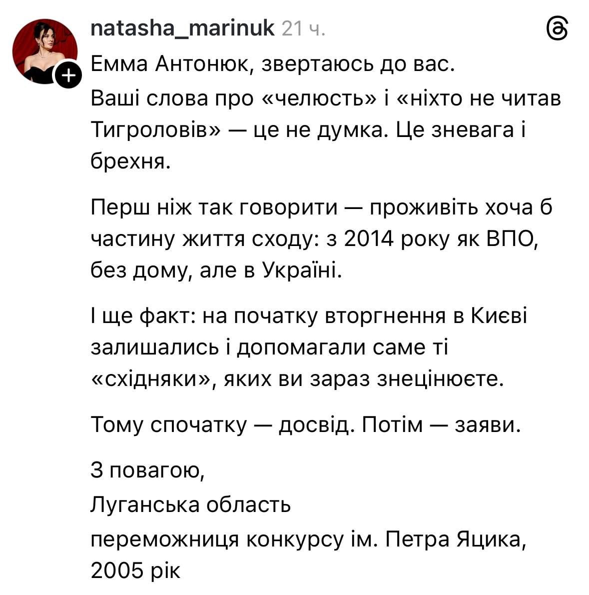 Допис Антонюк / © Фото з відкритих джерел