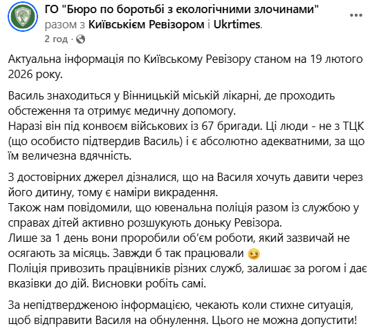«18 лютого до відділу поліції №3 Вінницького райуправління надійшло повідомлення від спеціального кореспондента періодичного видання про те, що минулої доби співробітники РТЦК та СП, а також працівники поліції незаконно його затримали та спричинили тілесні ушкодження, після чого відвезли до с. Бохоники Вінницького району для проходження ВЛК», — йдеться в повідомленні.