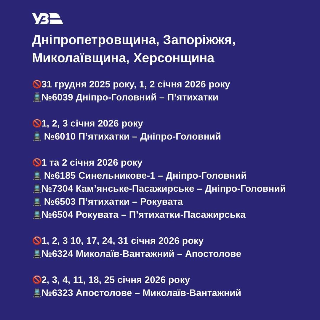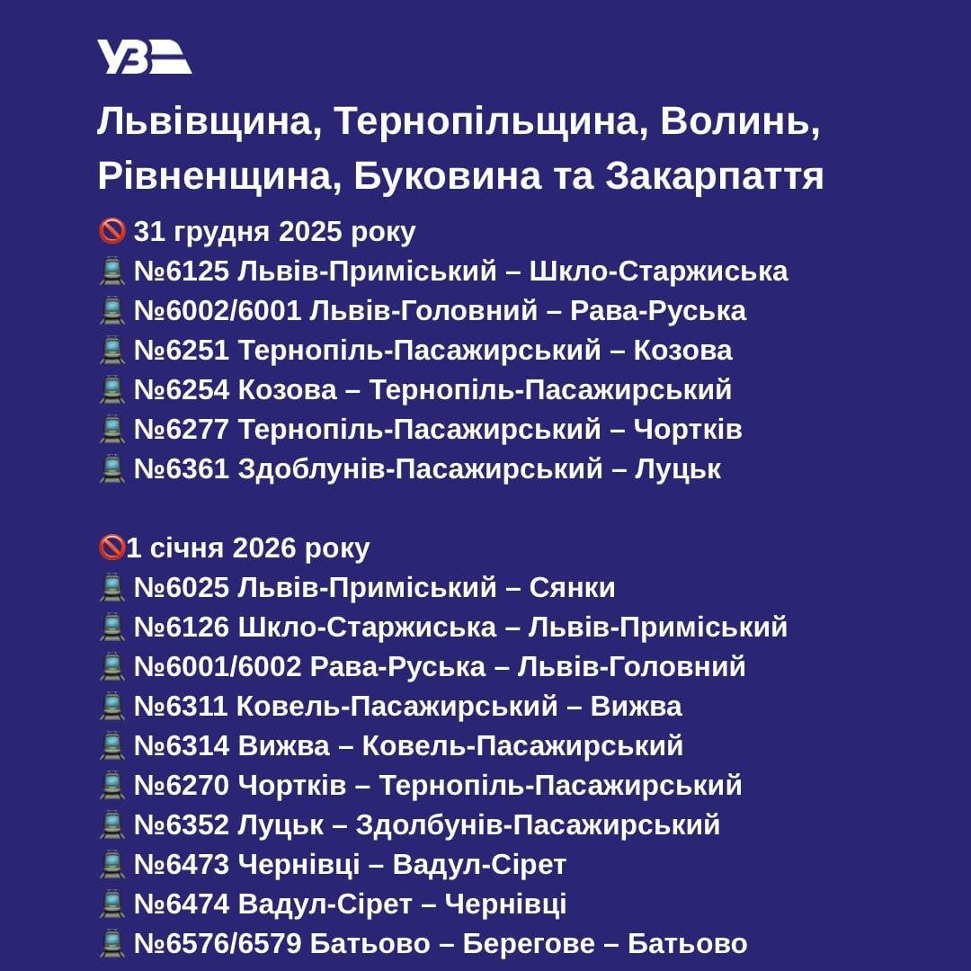 “Новорічні свята — це час затишку і трохи іншого ритму життя. У ці дні пасажирів на окремих приміських напрямках меншає”, — пояснили в Укрзалізниці.