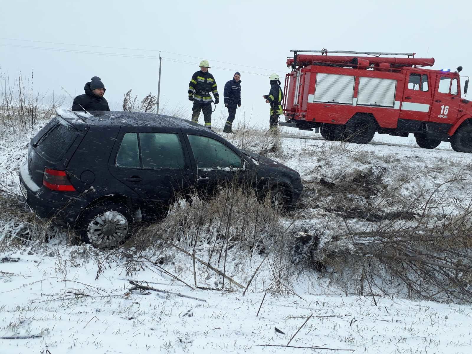 Автомобіль злетів з дороги і в Обухівському районі Київської області. Рятувальники витягли легковий автомобіль на проїжджу частину. Від надання медичної допомоги водій відмовився.