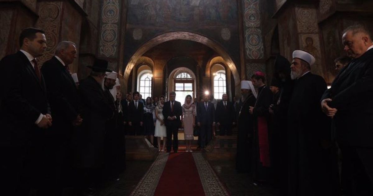 Президент Петро Порошенко разом з дружиною Мариною Порошенко та дітьми у Софійському соборі помолились за Україну.