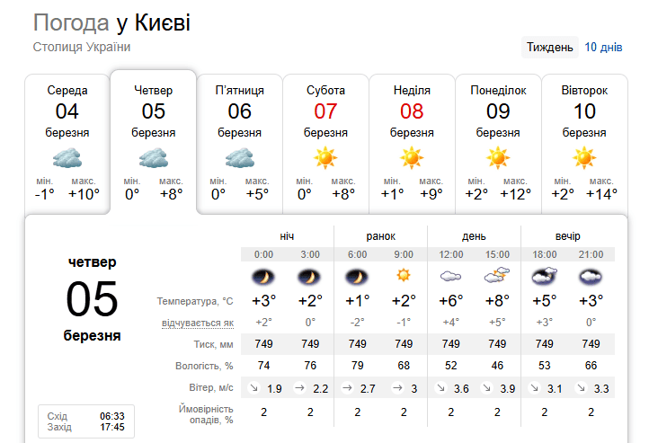 Погода у Києві 5 березня / © скриншот