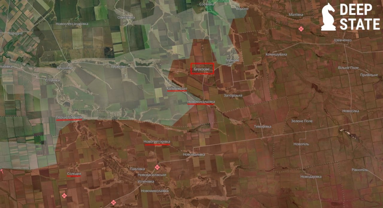 За інформацією оглядачів, наразі активні бойові дії тривають у населеному пункті Березове. Сили оборони намагаються зачистити село від російської піхоти, але там ворог усе ще чинить спротив і постійно здійснює тиск.