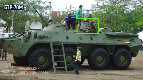 На оприлюдненому відео видно БТР з українським камуфляжем "піксель", але є одна важлива деталь. Як стверджує експерт, у ролику БТР-70М — такої модифікації бронетранспортера на озброєнні Україна не має.