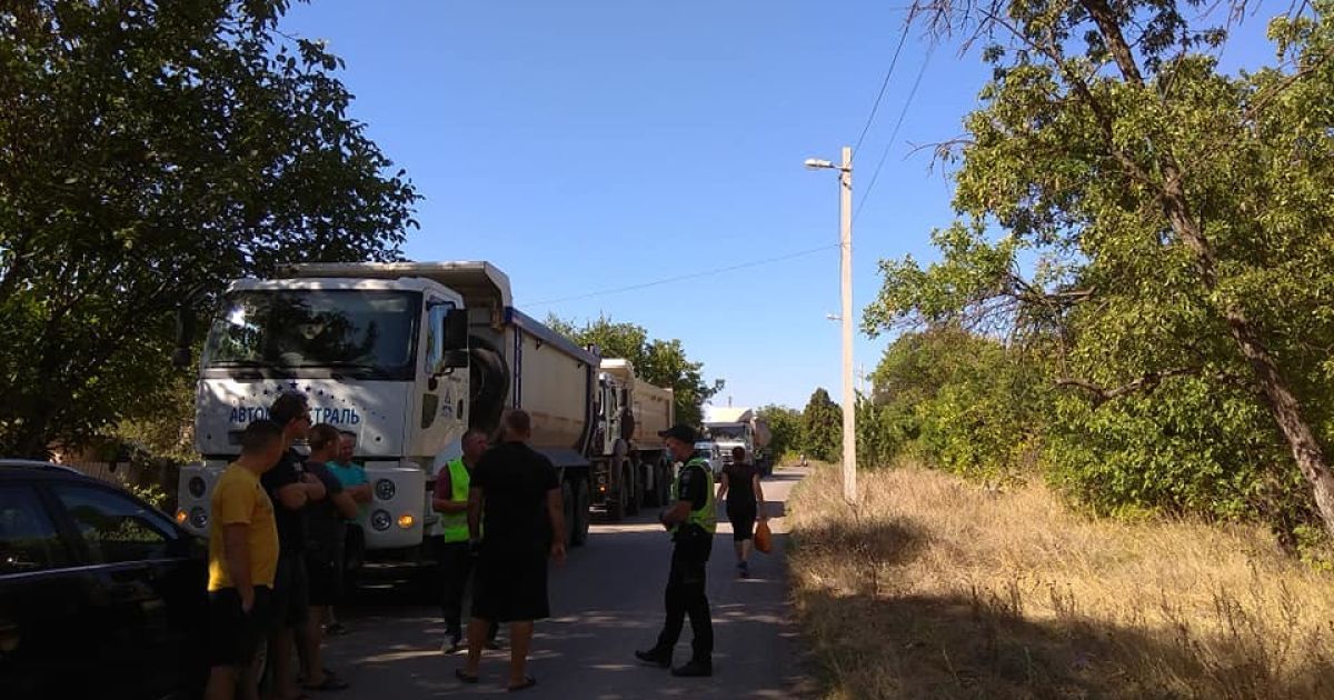 Жінка зазначила, що мешканці приватного сектору зранку зупинили 2 фури і не дали їм проїхати далі. На місце викликали патрульних.