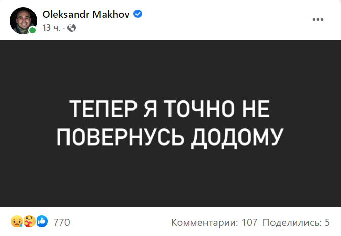 "Тепер я точно не повернусь додому - в Луганськ, і мій дім - Луганськ - не повернеться в Україну. Тепер моя мама так і залишиться по той бік лінії фронту", - написав він у себе в Facebook.
