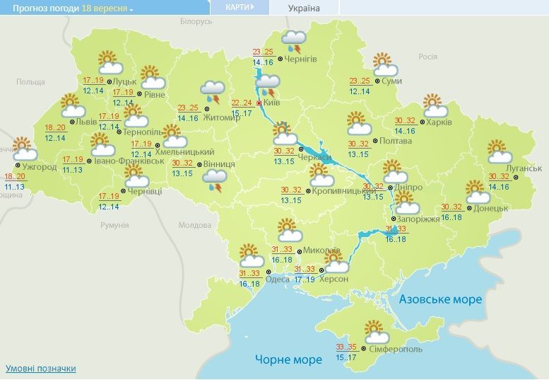 Прогноз погоди в Україні на 18 вересня 2017 року / © Укргідрометцентр