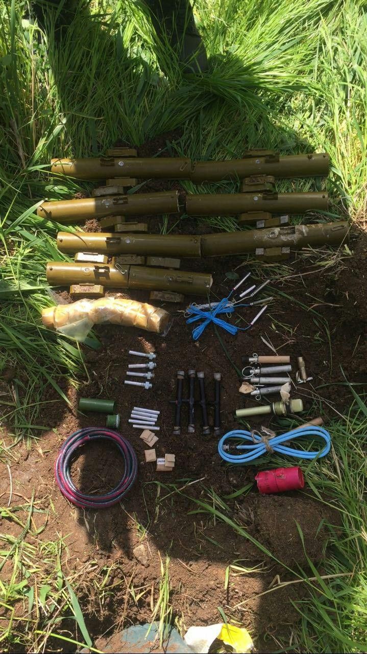 "Також правоохоронці вилучили зі схованки два кіло тротилу у шашках, десять електродетонаторів, п'ять капсуль-детонаторів, 16 детонаторів до підривачів миттєвої та повільної дії, вісім кумулятивних зарядів із часовими утримувачами, детонуючий шнур, сім упаковок металевих комплектуючих елементів, дві гранати РГД-5 із запалами та інше", – йдеться у повідомленні.