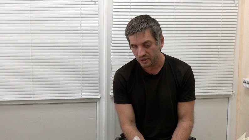 «Не було ніякого опору від мене. Я то вставав, то сидів на стільчику. І потім він вже сказав: „Якщо ти будеш так далі себе поводити, я тебе поб’ю“. Тут йому я вже набрид. Він зривається. Я швиденько сідаю на стільчик і кажу: „Все-все, я сиджу“. А я стояв, просто нічого не робив. Він бере мене, хапає, з усієї сили кидає об підлогу. І сідає на оцей стільчик. І на голову мені ставить ногу. І це в такому вигляді я там лежав. Вони ще поставили камеру тут. Це має все теж бути зафіксовано…», — зазначає ветеран.