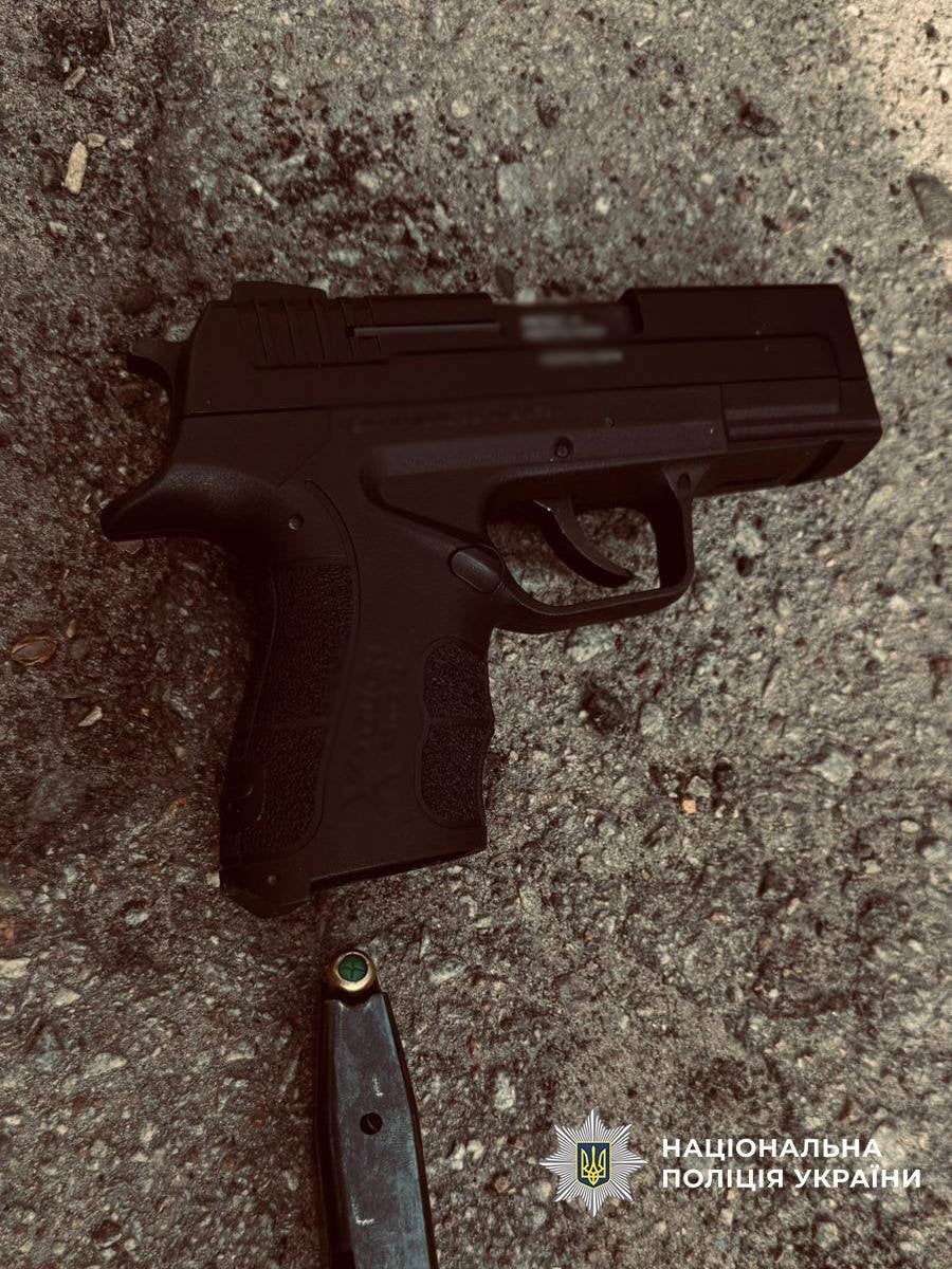 Поліцейські оперативно затримали 23-річного хулігана. Зброю вилучено, мотиви скоєного встановлюються.