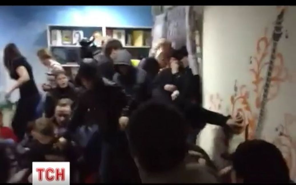 Активісти проводили зустріч з громадськістю, як раптом у приміщення вдерлися люди з георгіївськими стрічками. Спочатку вони лаяли відвідувачів, а потім почали бити їх та трощити меблі.