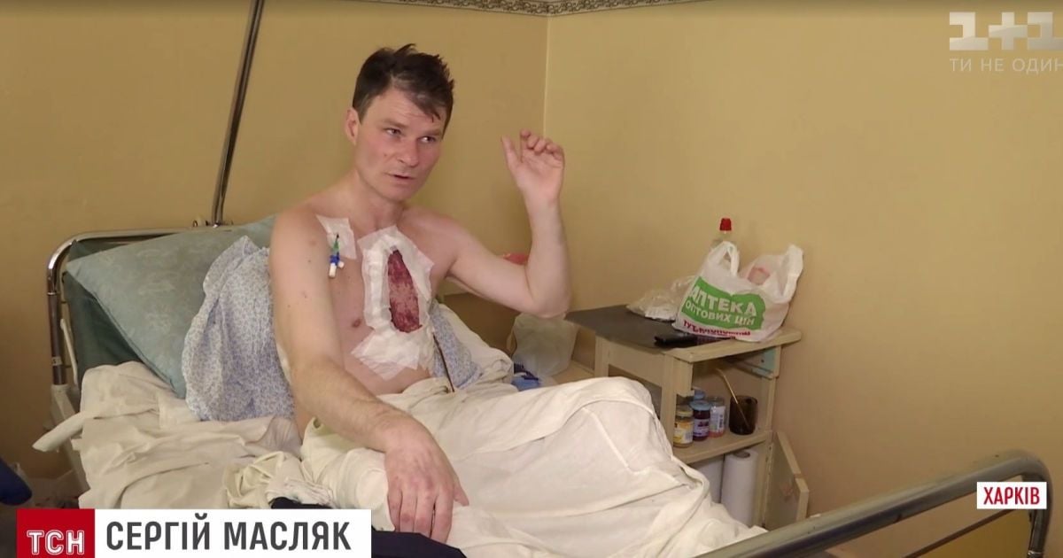 Для цього зібрали команду з трьох хірургів різної спрямованості. Щоби дістатися пухлини, їм довелося видалити шість ребер та значну частину шкіри. Для заміни ребер створили конструкцію з титану та поліпропіленової сітки, а от шкіру та м'язи, аби затулити дірку в грудях, довелося брати зі спини пацієнта. Результатом операції медики задоволені й обіцяють, що за кілька тижнів Сергій уже повернеться додому.