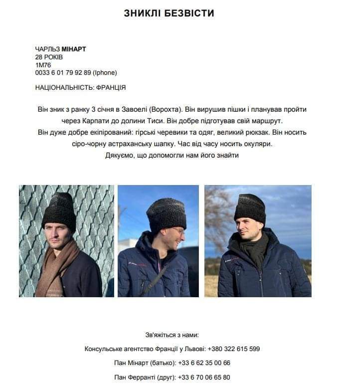 Шарль Мінарт, який зник у Карпатах 3 січня 2024 року