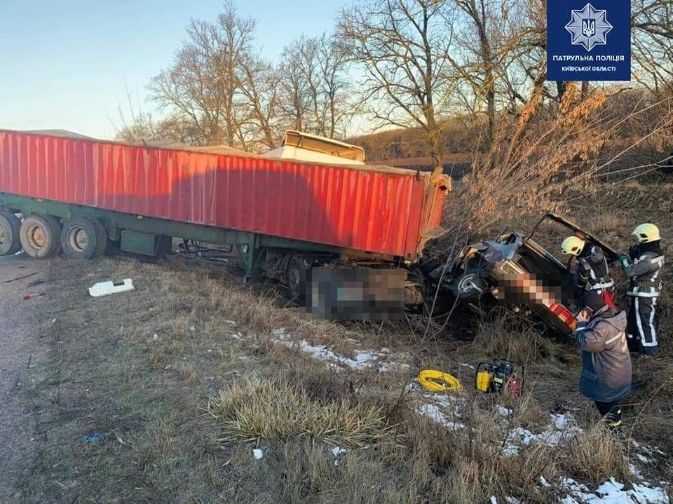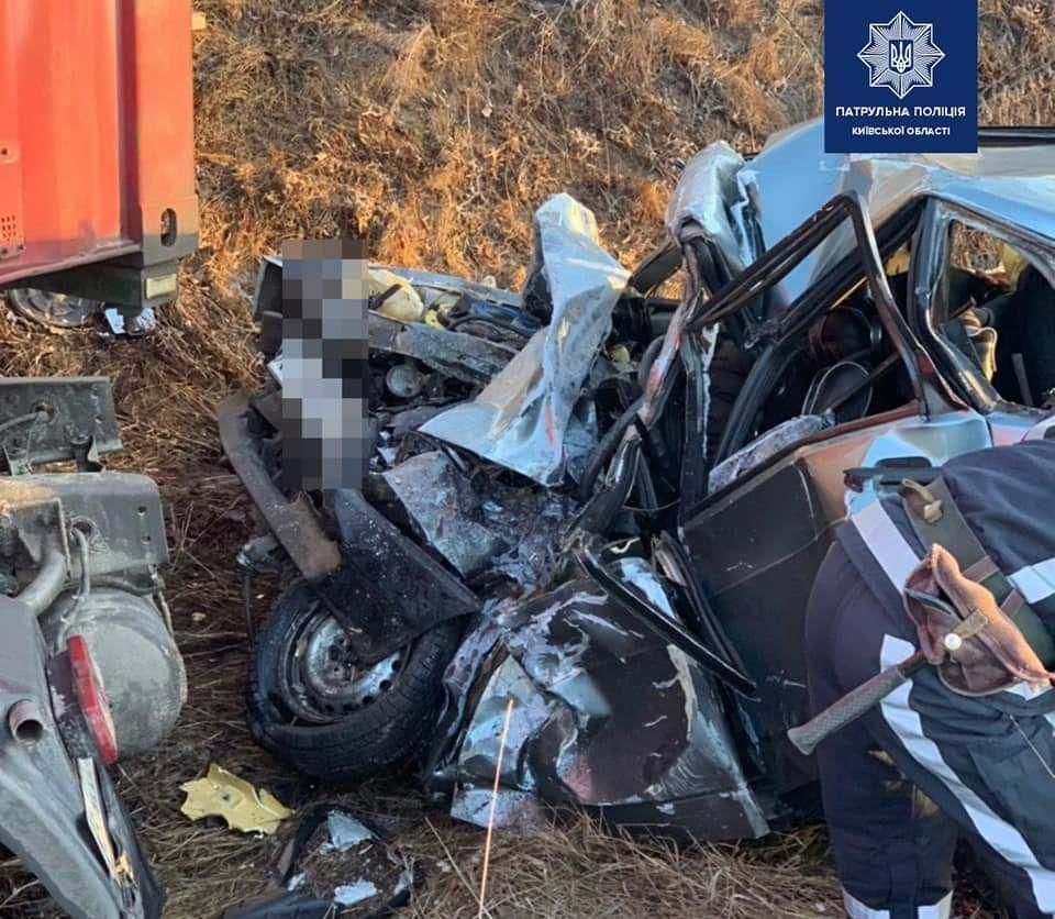 У Київській області зіткнулись та злетіли в кювет вантажівка і легковик: людина загинула